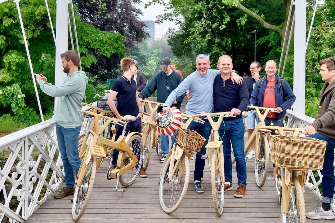 Experience the vibrant city of Antwerp in Belgium on a guided bike tour, riding through its most iconic neighborhoods and landmarks on a unique wooden COCO-MAT bicycle. This eco-friendly adventure begins in the lively Schipperskwartier, where your guide helps you get comfortable on your stylish wooden bike.