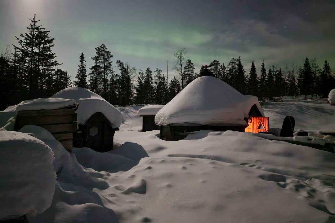 Experimenta las maravillas del paisaje invernal de Rovaniemi y las hipnotizantes Luces del Norte. Comienza tu viaje en Koskikatu 20, donde te proporcionarán ropa de invierno cálida para tu aventura. Un corto viaje te lleva a nuestras acogedoras cabañas en Pattaskivalo, donde disfrutarás de jugo de bayas caliente y auténticas delicias laponas, preparándote para la excursión que se avecina.