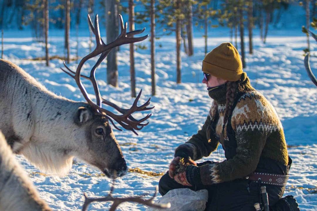 Inside a cozy tepee, warm up by the crackling open fire with a cup of coffee or tea, surrounded by the serene presence of reindeer. Take this opportunity to learn about traditional herding tools as you try your hand at tossing a reindeer lasso under expert guidance.