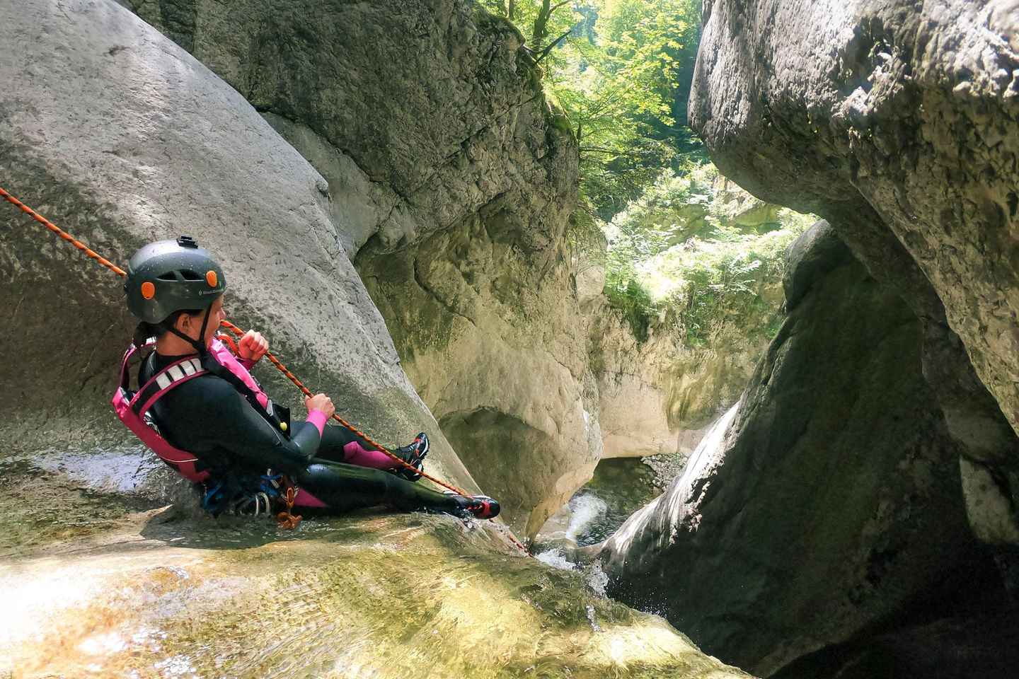 Partez pour une aventure inoubliable de canyoning près d'Interlaken, où les gorges de Chli Schliere offrent une expérience remplie d'adrénaline ! Après un trajet pittoresque de 60 minutes, préparez-vous pour une journée d'excitation et d'aventure en plein cœur de la nature.