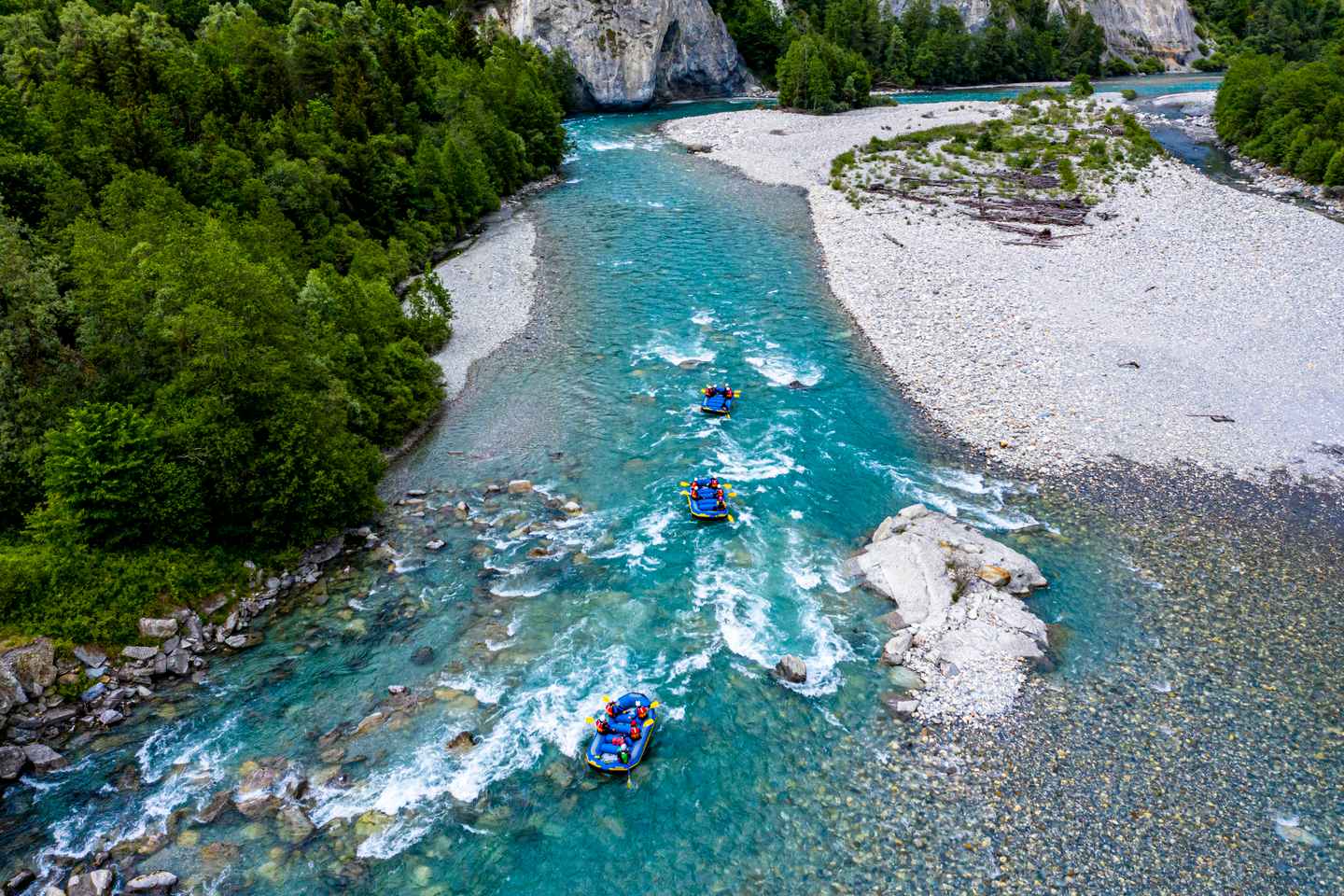 Rendez-vous à la gare d'Ilanz et profitez d'une courte marche jusqu'à notre base. Là, vous recevrez un briefing de sécurité détaillé avant de vous lancer dans les défis excitants de la rivière. Travaillez en équipe pour dompter les rapides et créez des souvenirs inoubliables.