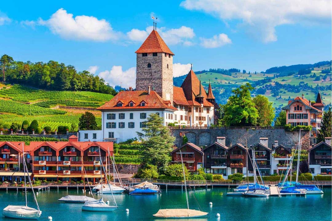 Poursuivez votre aventure à Spiez, une ville médiévale pittoresque avec un château offrant des vues panoramiques. Émerveillez-vous devant la beauté pittoresque de Thoune, où un majestueux château domine des lacs et montagnes à couper le souffle.