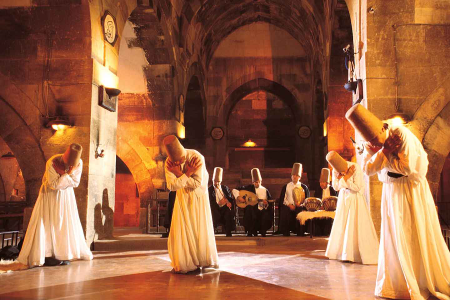 Découvrez la profondeur spirituelle d'une cérémonie de derviches tourneurs en Cappadoce ! Commencez votre aventure avec une prise en charge pratique depuis votre hôtel, qui vous conduira soit au Motif Art Center, une authentique maison troglodyte à Ortahisar, soit au célèbre caravansérail de Saruhan. Ici, vous assisterez à une véritable cérémonie de derviches, offrant un aperçu unique du patrimoine spirituel de la région.