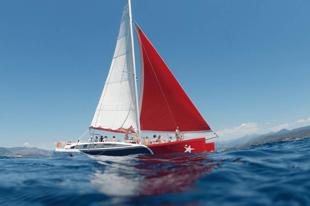Embark on a thrilling catamaran day trip in Ajaccio Bay! Explore the renowned Sanguinaires Islands and Capo di Muro, famed for their stunning views and vibrant history. With a professional skipper onboard, you'll dive into crystal-clear waters and discover wild coves, all in a small group setting.