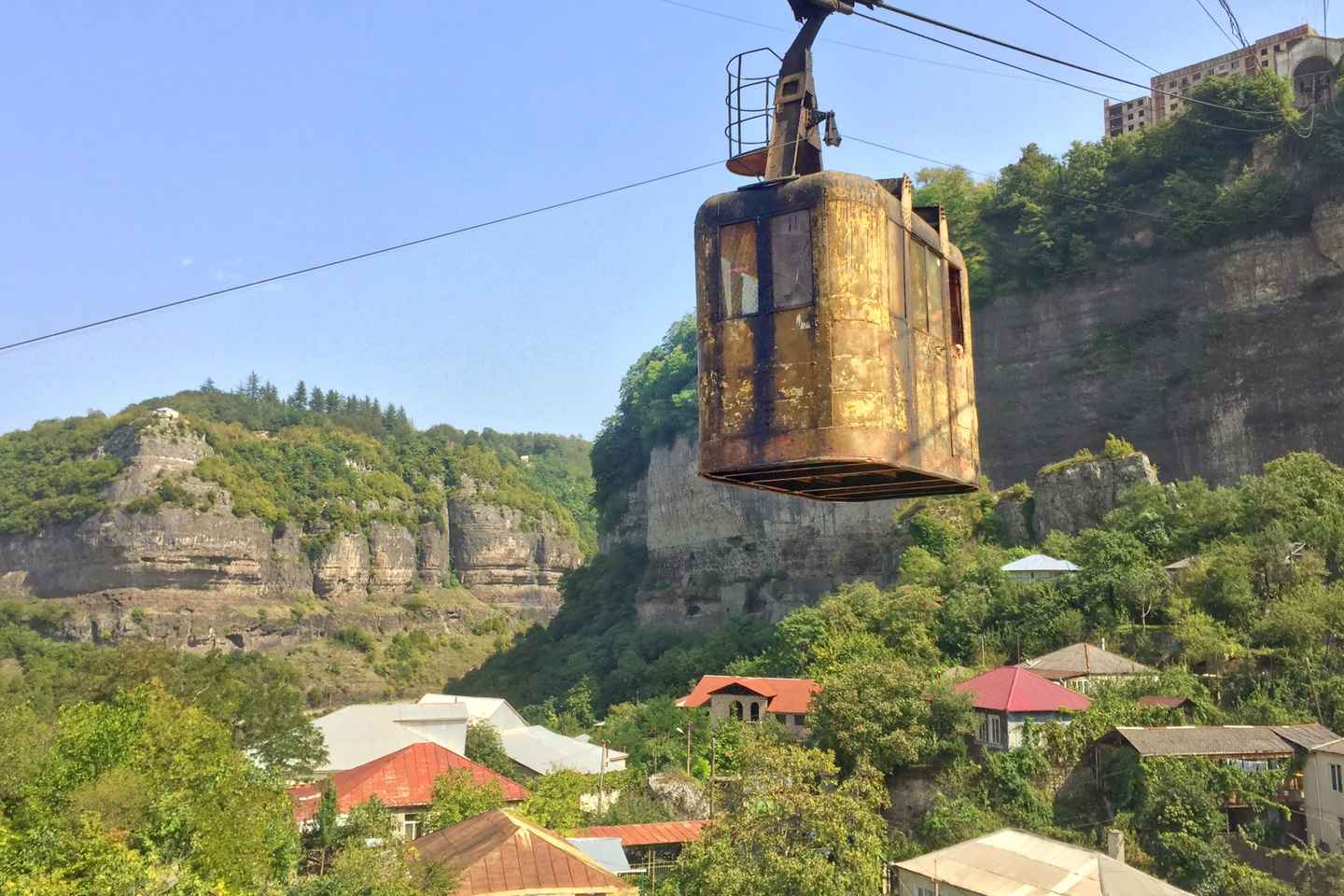 Continue to the town of Chiatura, once a thriving center of Georgia’s mining industry. Here, you’ll experience the iconic Soviet-era cable car system, which still transports locals across the steep valleys and gorges. Some cable lines may be closed for repairs, but the operating ones offer a unique glimpse into the past.