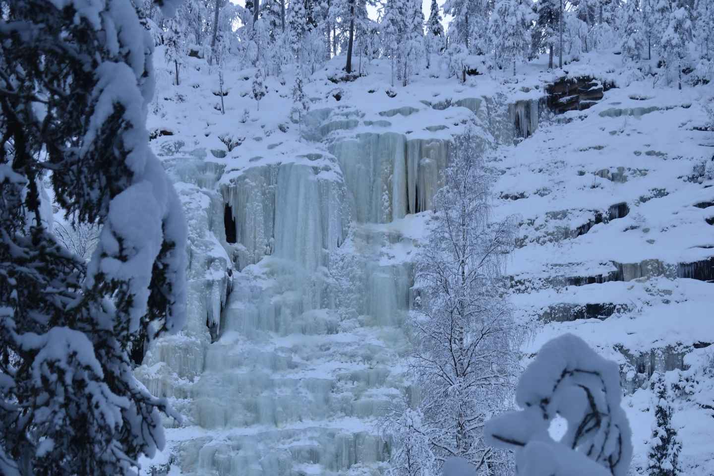 Upplifðu ævintýralega vetrarlandslagi Korouoma! Taktu þátt í leiðsögn um þessa töfrandi náttúruverndarsvæði sem er þekkt fyrir stórkostlega frosna fossa og snæviþakta slóða. Sérfræðingar munu leiða þig um friðsæla stíga og deila innsýn í norræna náttúru.