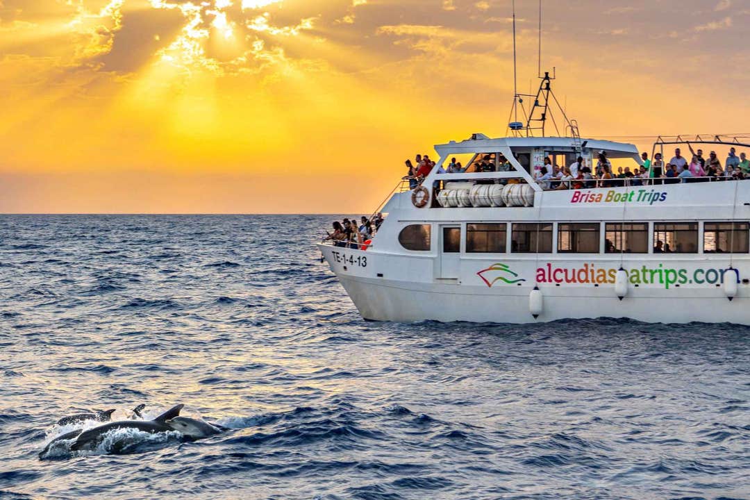 Báturinn fer frá Puerto de Alcúdia og stefnir á bestu staðina til að sjá höfrunga meðfram ströndinni. Dástu að höfrungunum og njóttu stórfenglegrar sólarupprásar, á meðan þú upplifir ógleymanlega stund á vel útbúnum bátnum okkar.
