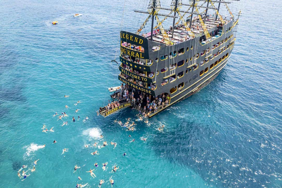 Farið um borð í stærsta sjóræningjaskip Tyrklands fyrir spennandi siglingaævintýri í Alanya! Kafið í tæran sjó við Ulas ströndina, njótið síðan hlaðborðs hádegisverðar með ótakmörkuðum drykkjum. Kynnið ykkur líflega miðbæ Alanya, þar sem verslanir og kennileiti eins og rauða turninn bíða eftir að þið uppgötvið þau.