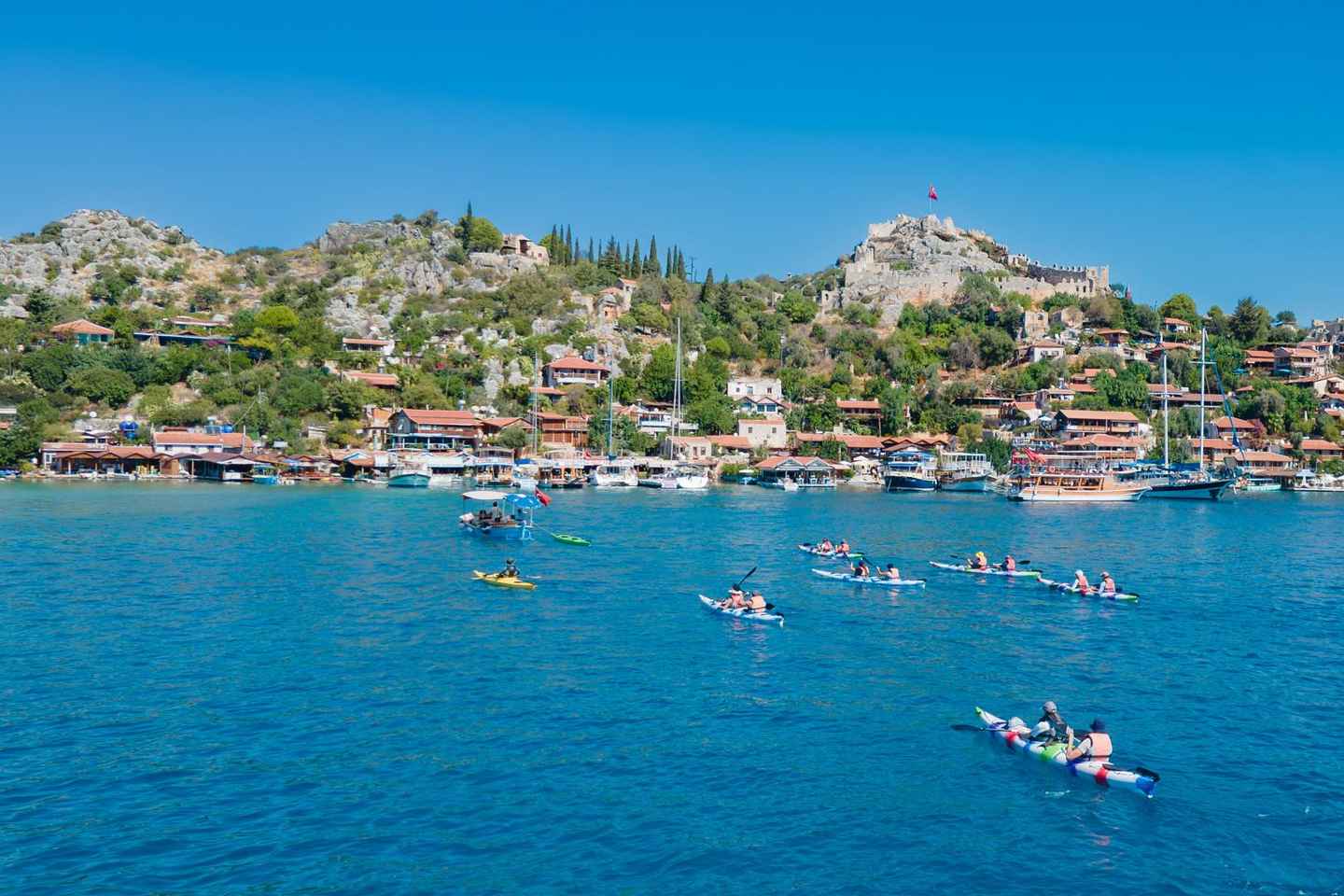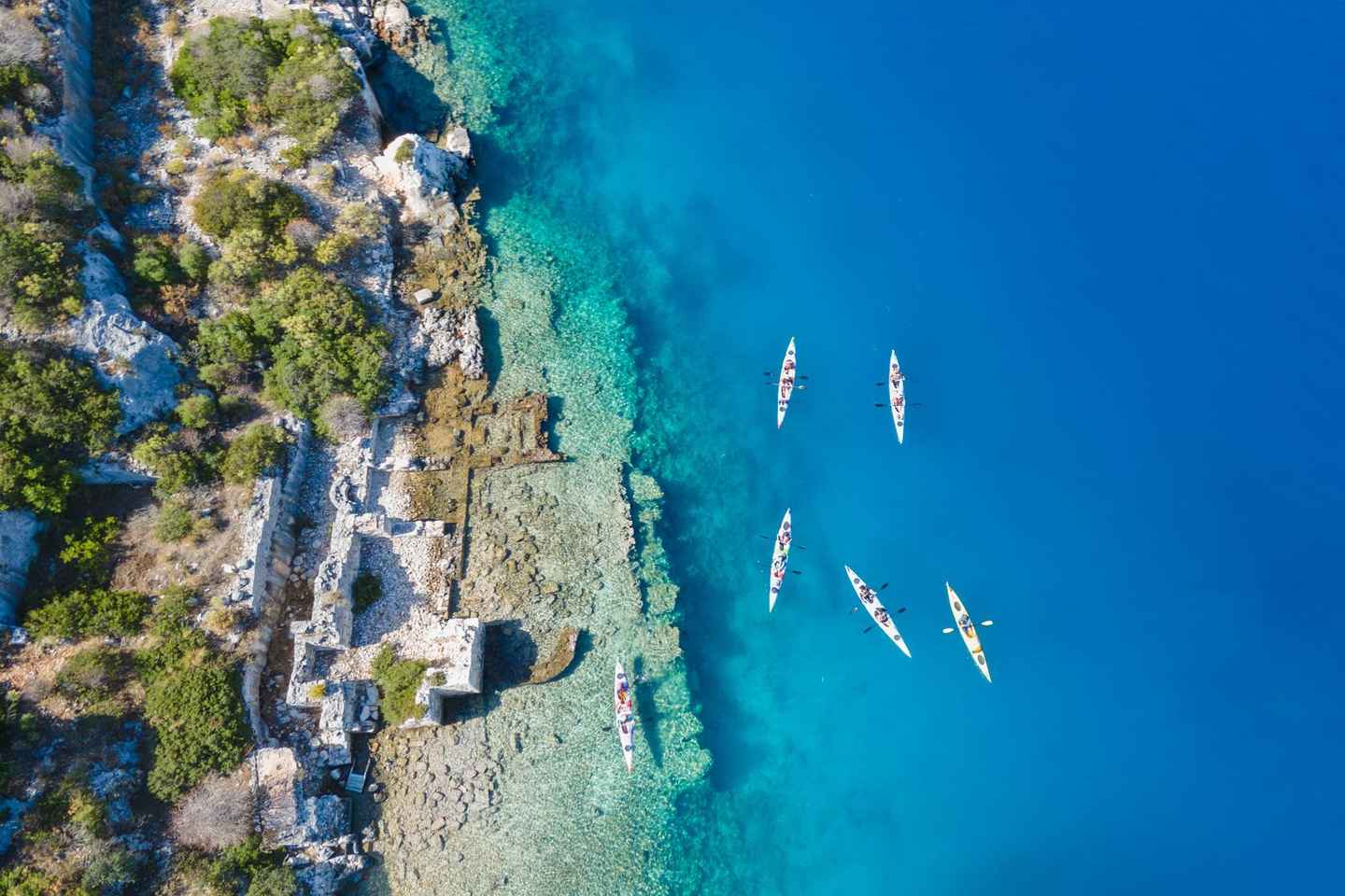 Stingdu þér í æsispennandi sjókajakferð meðfram stórfenglegu Kekova-ströndinni! Byrjaðu ferðina frá Üçağız með vélknúnum stuðningsbát sem leiðbeinir þér suðvestur í átt að Kekova-eyju. Njóttu endurnærandi sunds við Tersane-flóa áður en þú rær yfir hina fornu, sökkvuðu borg Lýkíu, sem er kjörinn staður fyrir einstakar ljósmyndir af sokknum rústum.
