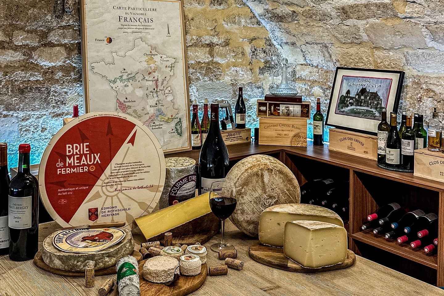 Prima o dopo la tua degustazione, cogli l'occasione per acquistare una selezione di specialità francesi, tra cui formaggi, prosciutti e vini. In alternativa, goditi un bicchiere di vino sulla terrazza affascinante, immergendoti nell'atmosfera parigina.