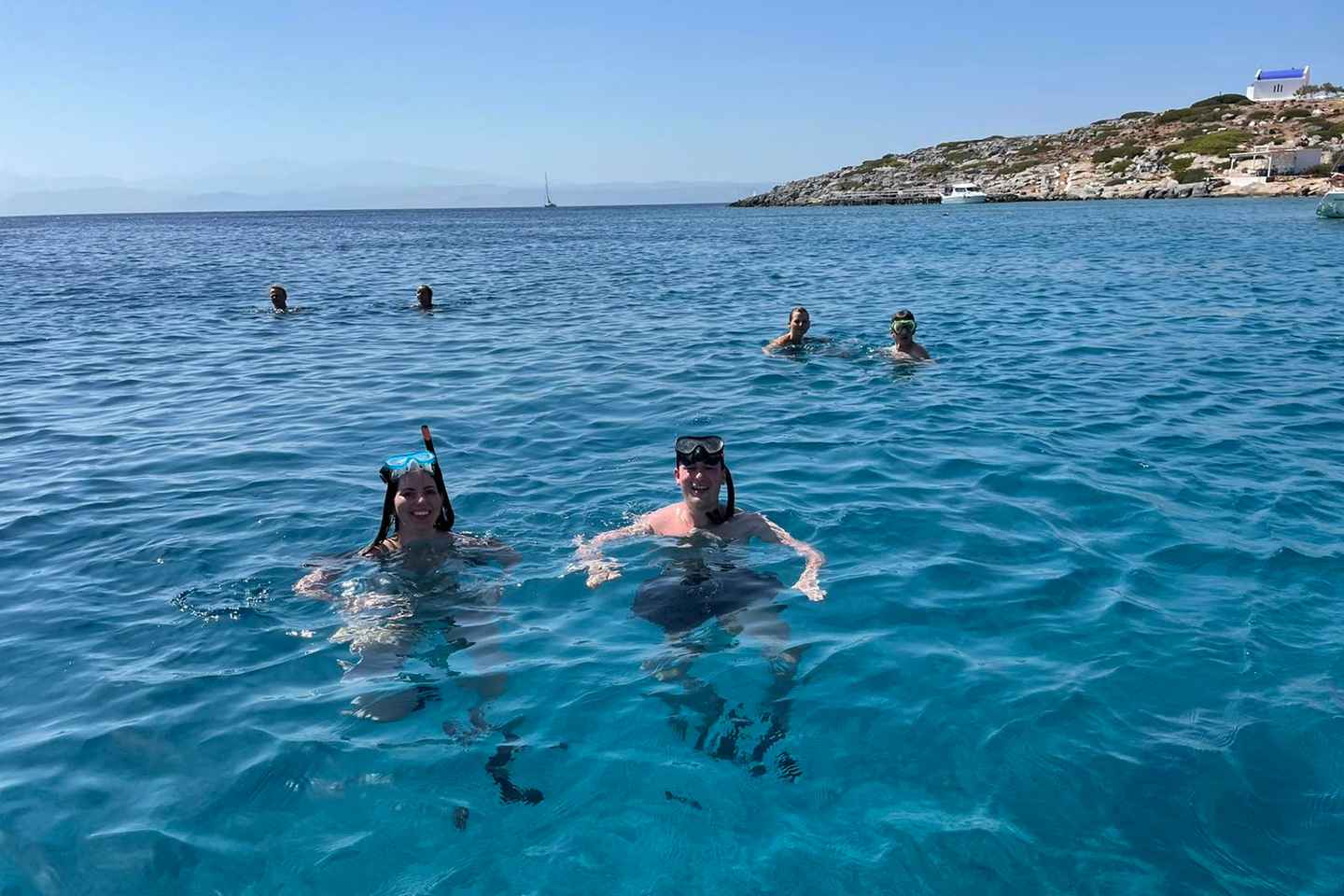 Una volta giunti all'Isola di Dia, tuffati nelle acque cristalline con l'attrezzatura da snorkeling fornita o prova a pescare sotto la guida del nostro amichevole equipaggio. Esplora il Golfo di San Giorgio, ricco di antiche rovine minoiche e vivace vita marina.