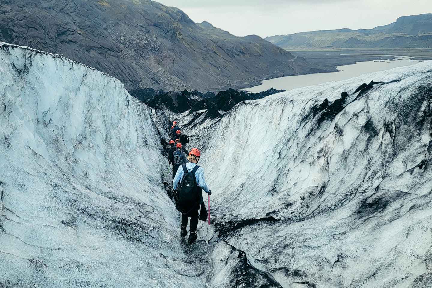 Salendo, si aprono panorami mozzafiato con montagne drammatiche, le Isole Westman e le iconiche sabbie nere della costa meridionale. Dissetati con i ruscelli di acqua pura del ghiacciaio e immergiti in questo meraviglioso spettacolo naturale. La tua guida condividerà approfondimenti sulla conservazione dei ghiacciai e risponderà a qualsiasi domanda sui ghiacciai islandesi.