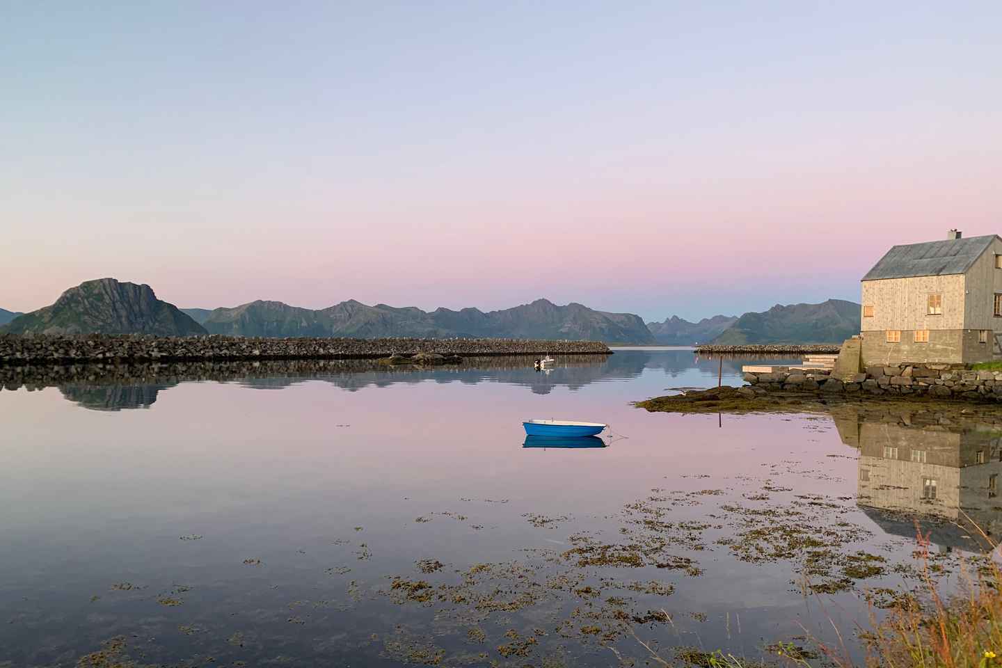 Inizia il tuo viaggio a Haukland Beach, dove potrai passeggiare sulla sua famosa sabbia bianca e ammirare lo splendido sfondo di montagne e acque cristalline. Questo luogo popolare offre l'atmosfera perfetta per una giornata indimenticabile.