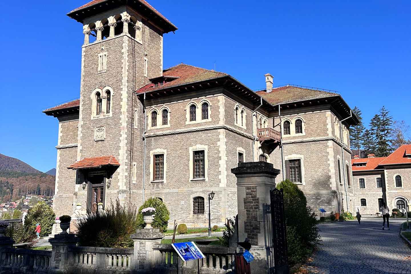 Prosegui il tuo viaggio verso il Castello Cantacuzino, noto come set della famosa serie Netflix "Mercoledì". Immergiti nell'atmosfera incantevole del castello e ammira le viste mozzafiato dei Monti Carpazi dal cortile. È una tappa imperdibile per gli appassionati di architettura e televisione.