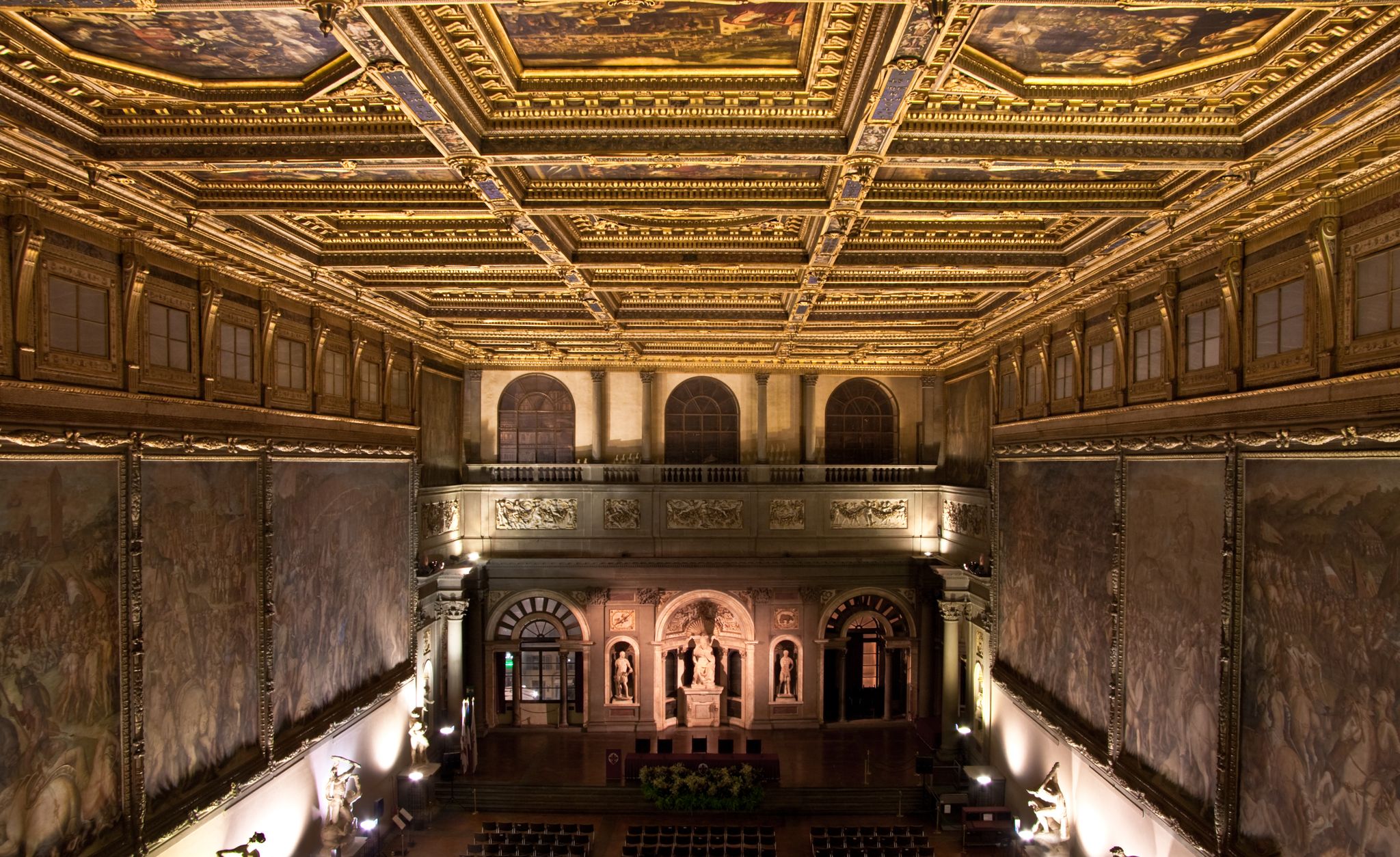 Inside, the Hall of the Five Hundred is a spectacle not to be missed, with its vast frescoed walls narrating the triumphs of Florence. This grand hall, originally designed for the city's governing council, reflects the power and prestige of the Renaissance era. The intricate frescoes by Giorgio Vasari tell stories of Florentine victories, making the hall a living canvas of history.