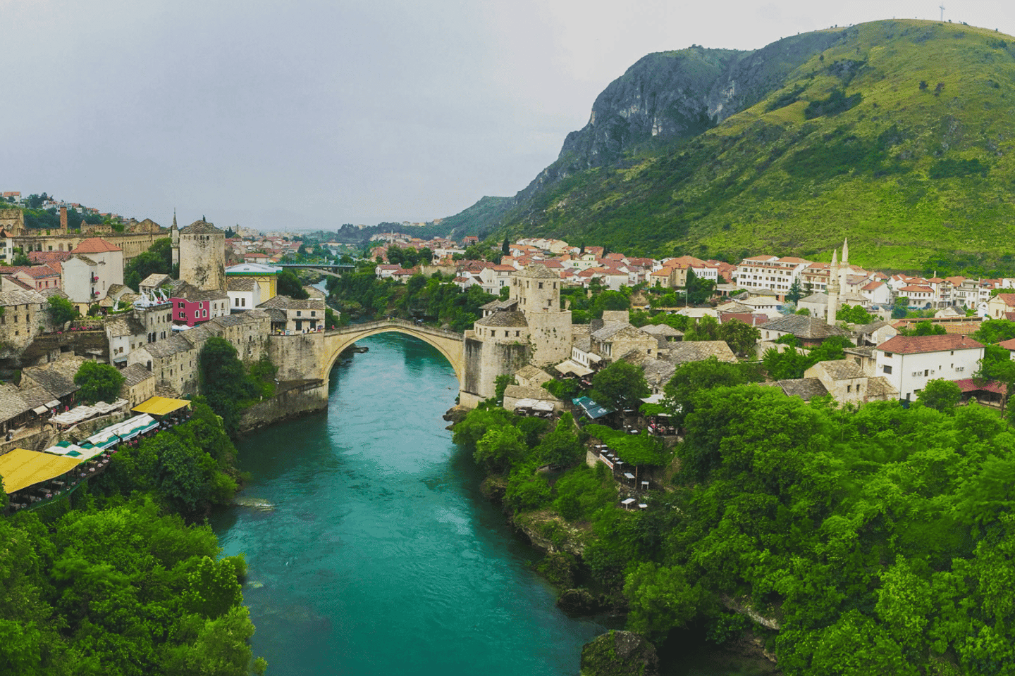 모스타르에서는 네레트바 강 옆에 자리잡은 유서 깊은 거리를 거닐며 탐험할 수 있습니다. 오스만 건축의 걸작품인 유명한 올드 브리지를 발견하고, 현지에서 제공하는 터키 커피와 맛있는 전통 과자를 음미해보세요.
