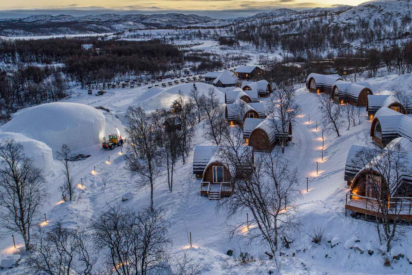 Inside the Snowhotel, discover 13 beautifully sculpted ice suites, each crafted by talented artists and featuring a new theme every year. Stop by the Icebar for a memorable drink served in a glass made of ice, and soak in the surreal atmosphere.