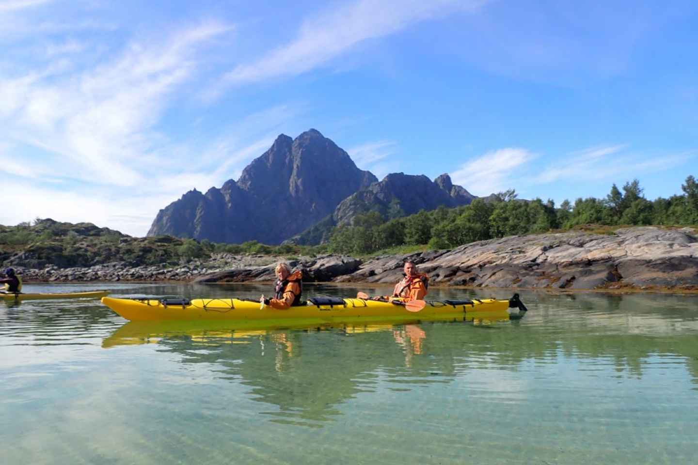 Your four-hour experience begins and ends in Svolvær, with convenient transfers included for a seamless start and finish. Paddle in comfort with high-quality double-seated sea kayaks, paddles, spraydecks, and all essential safety gear provided for your peace of mind.