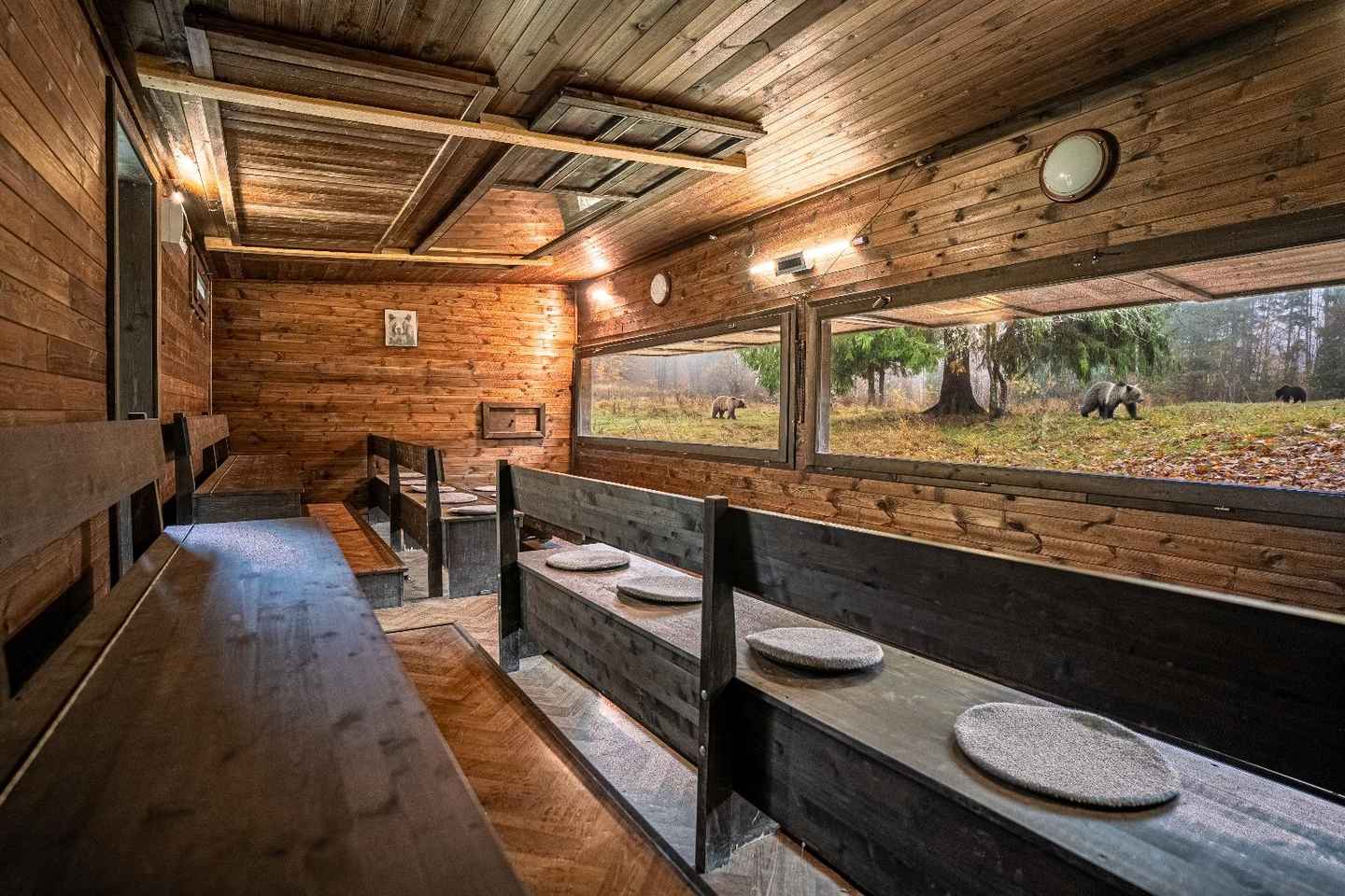 Settle into the hide and wait quietly as dusk falls, when bears are most active. The anticipation builds as you watch for bears to emerge from the trees. With luck, you may also spot foxes, deer, or game birds as the forest comes alive around you.