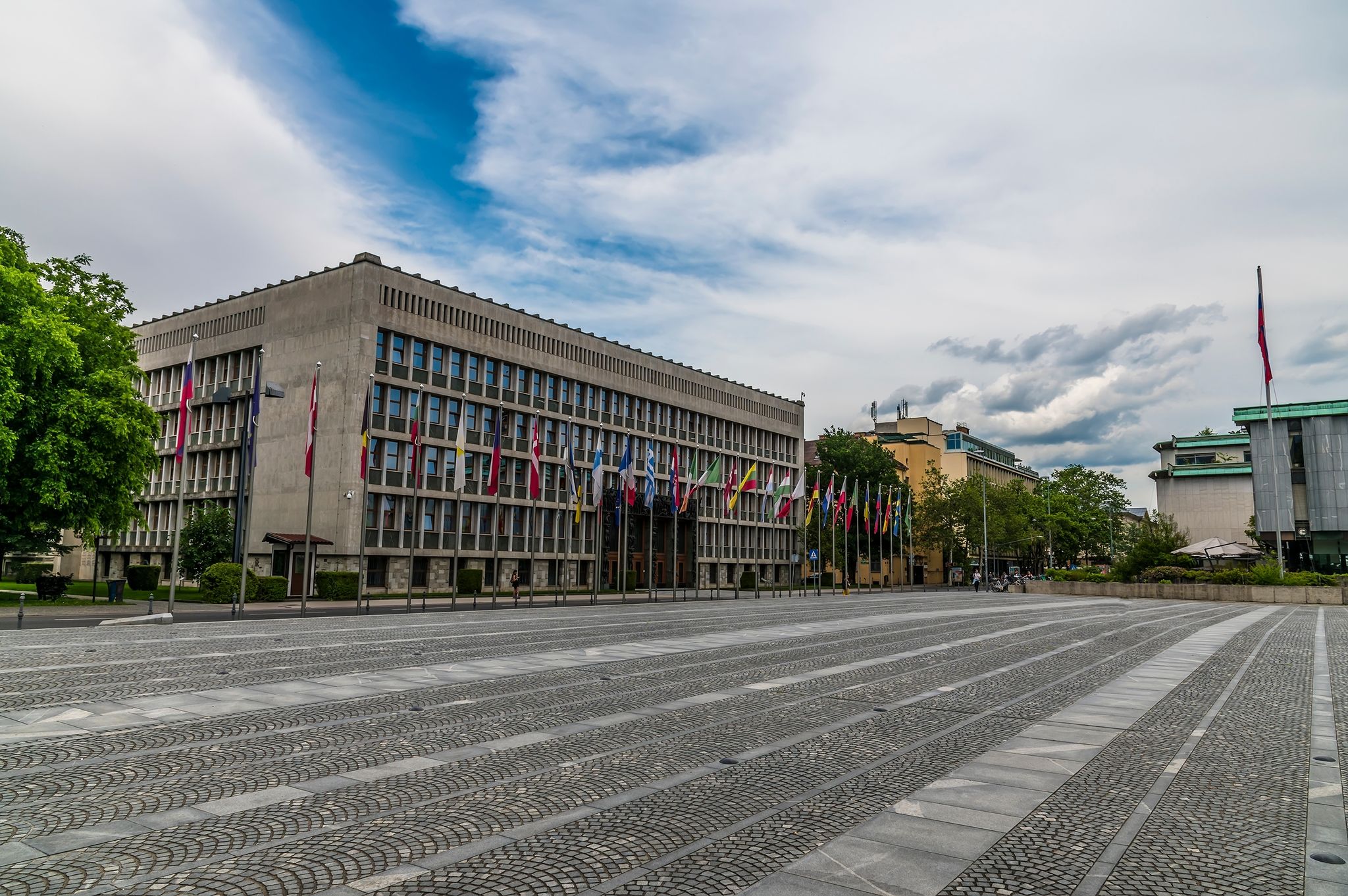 The Trg republike in Ljubljana is more than just a city square; it is a vibrant reflection of Slovenia's modernist architectural prowess. At its heart lies the Republic Square, a dynamic expanse that harmonizes urban design with cultural heritage. Flanked by iconic structures like the National Assembly Building and Cankar Hall, its modernist architecture is a testament to Slovenia's forward-thinking ideals.