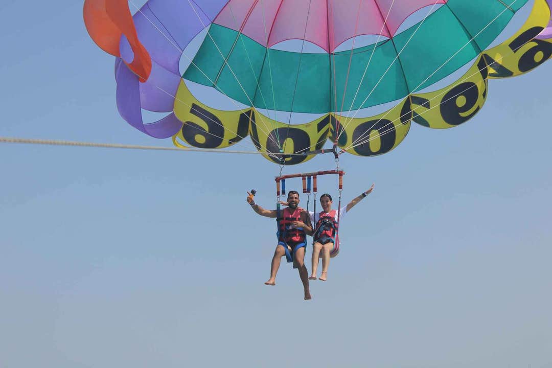 The parasailing experience lasts approximately 30 minutes, giving you plenty of time to take in the scenery and feel the rush of soaring above the sea. All necessary equipment, including a harness, is provided for your convenience.