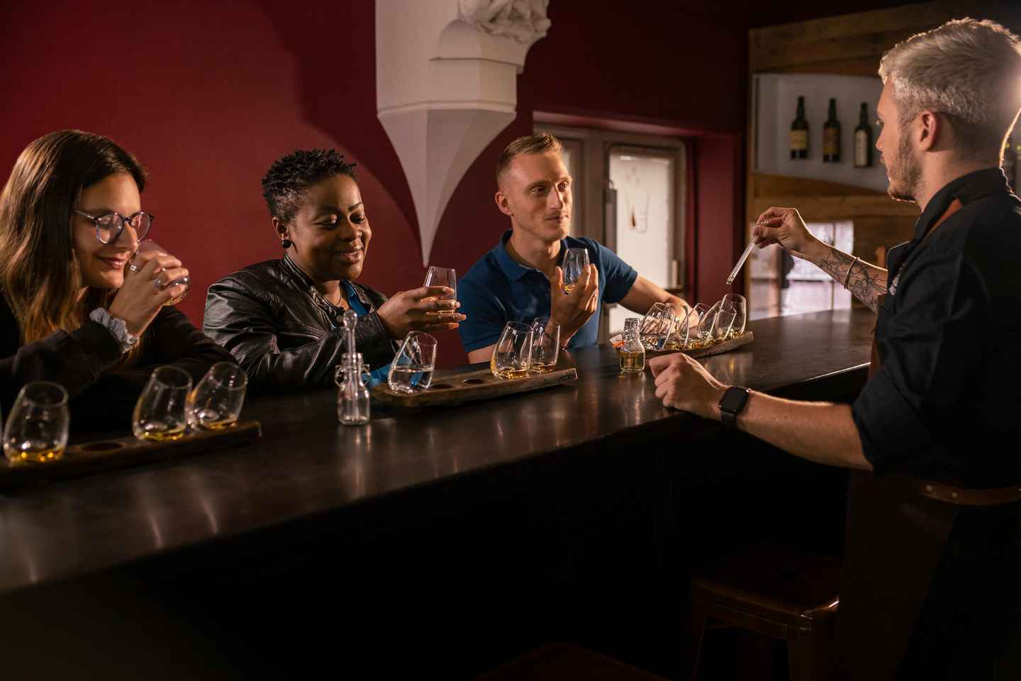 参观结束时,请前往时尚的威士忌酒吧,品尝四种独特的爱尔兰威士忌,由大师调配师引导,分享威士忌酿制艺术的奥秘。
