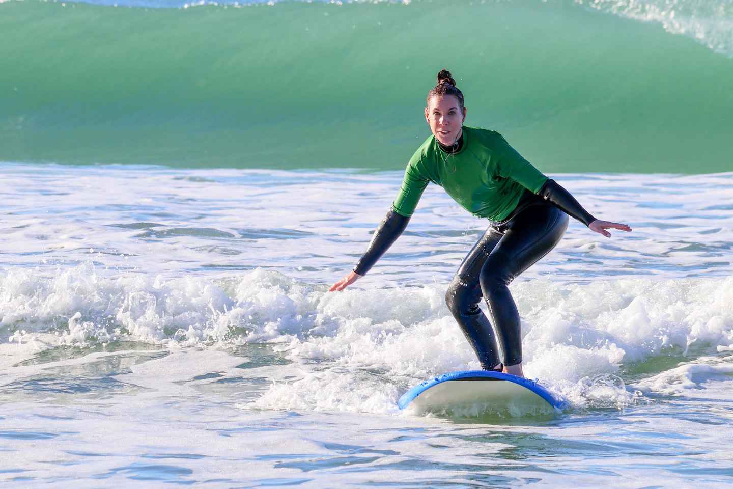 步行不远即可到达海滩,您将在那里开始热身。我们的经验丰富的教练会指导您如何捕捉海浪,并提供个性化的技巧以提高您的技能。随着信心的增强,您将在陆地和水中练习站立在冲浪板上。